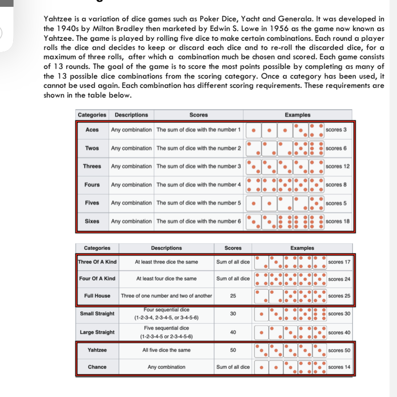 Solved Yahtzee Is A Variation Of Dice Games Such As Poker Chegg Com